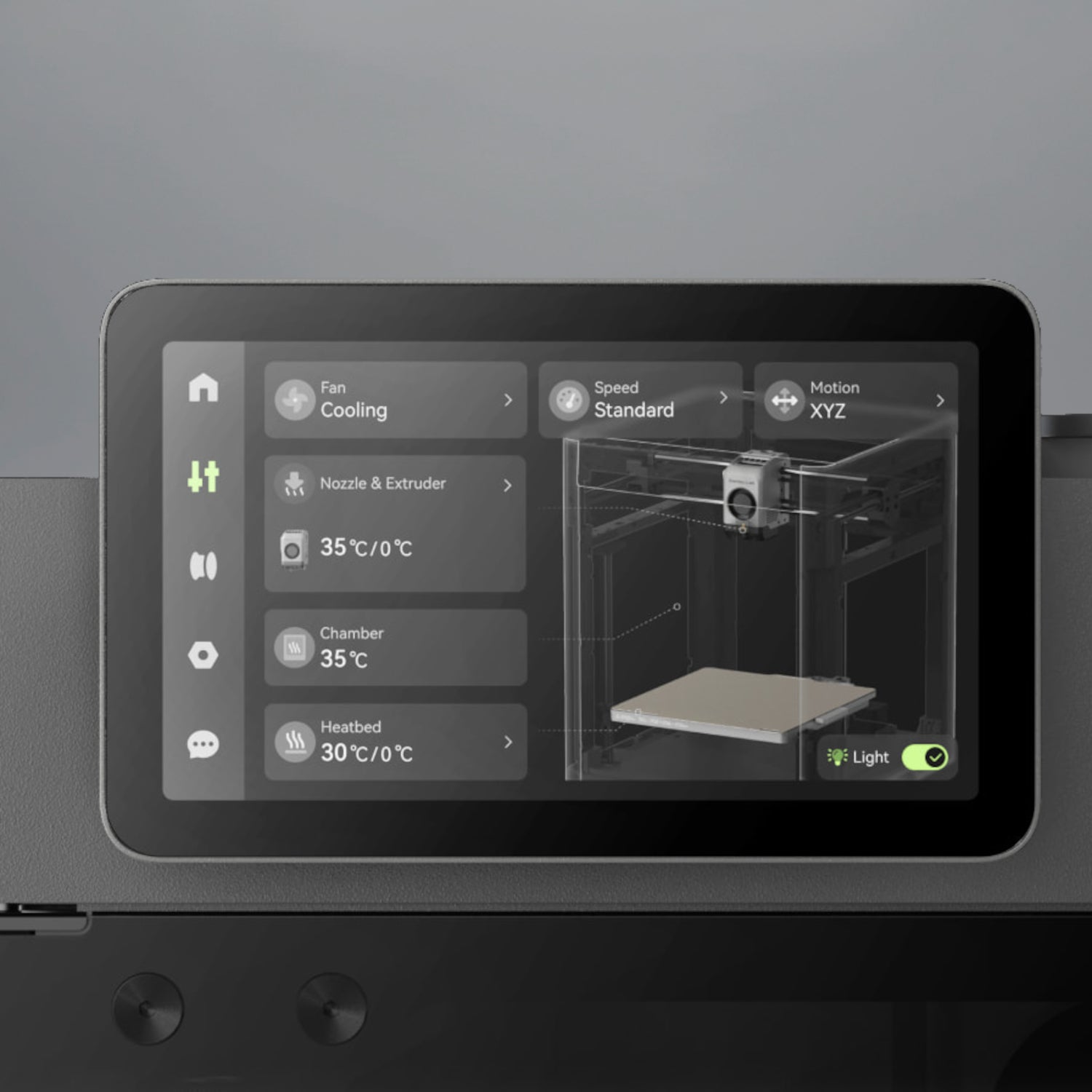 600mm/s baskı hızı ve 20.000mm/s² ivmelenme ile rakiplerini terleten bir performans. Servo extruder önceki nesle göre %70 daha fazla ekstrüzyon gücü sağlıyor (8.5kg'a kadar) ve 20kHz örnekleme hızıyla gerçek zamanlı tıkanma tespiti yapıyor. Mesela, extruder filamenti öğütmeye mi başladı? Printer anında bundan sizi haberdar ediyor.